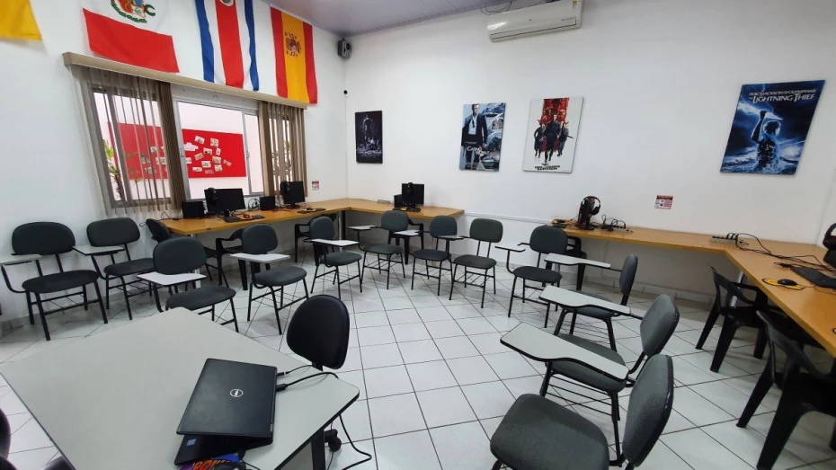 - Salas de aula: Todas as salas de aula são equipadas com TV LCD de 42”, 6 Notebooks e internet wireless